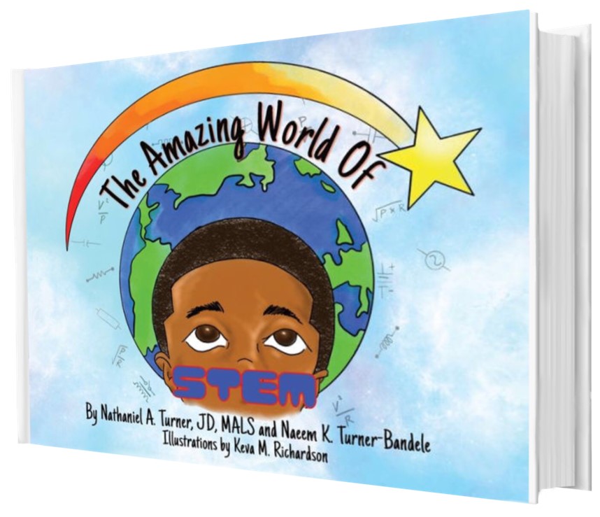 “The Amazing World of STEM” tells the story of Stuart Tyson Elmo Morgan – STEM – get it!  Created by father and son co-authors, Nathaniel A. Turner and Naeem K. Turner-Bandele, the book is about a family of three out for a day of soccer.  STEM makes a last-minute score to win the game and dad falls to the ground in pain while trying to prevent the win.  The injury was just a slight fracture, but STEM feels personally responsible even though his dad reassures him it was not his fault.  As a mailman, the father will be out of work for a while.  This is when STEM’s creativity sets in and he uses his engineering and technology skills to remedy this situation.  To find out what STEM does to create some income, you will have to read the book.