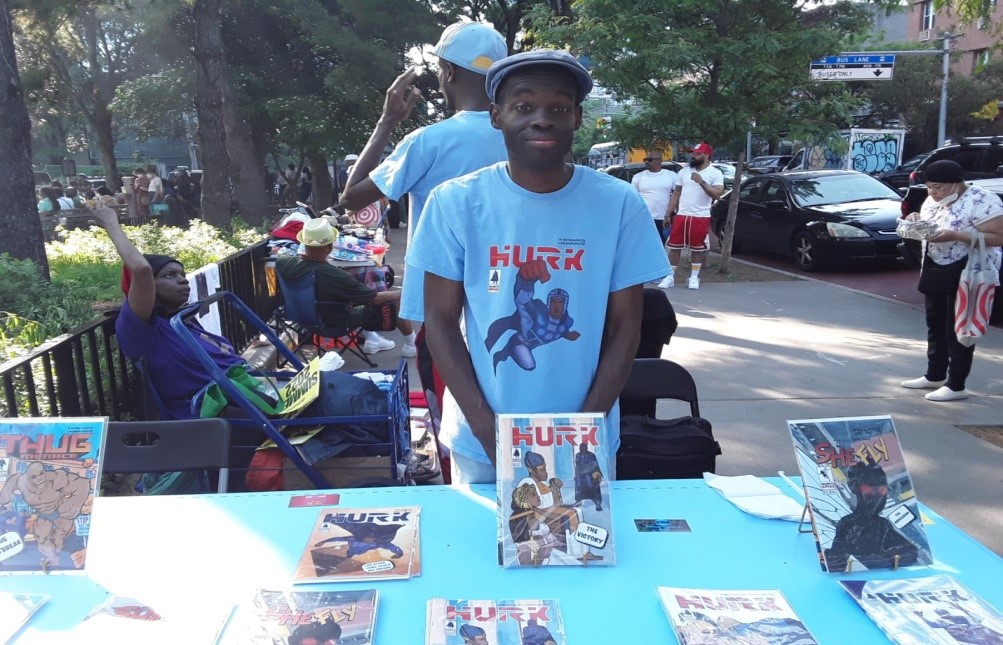 Many of us know that cultural events like BAM’s DanceAfrica Festival and the International African Arts Festival which feature African-centered everything from live entertainment to food to clothing to jewelry to grooming aids to paintings also serve as a great way for creators to introduce their work to the world. This year’s Festival was no exception and participants included Newcomers like Lennir Menjazz, a young comic book promoter.
